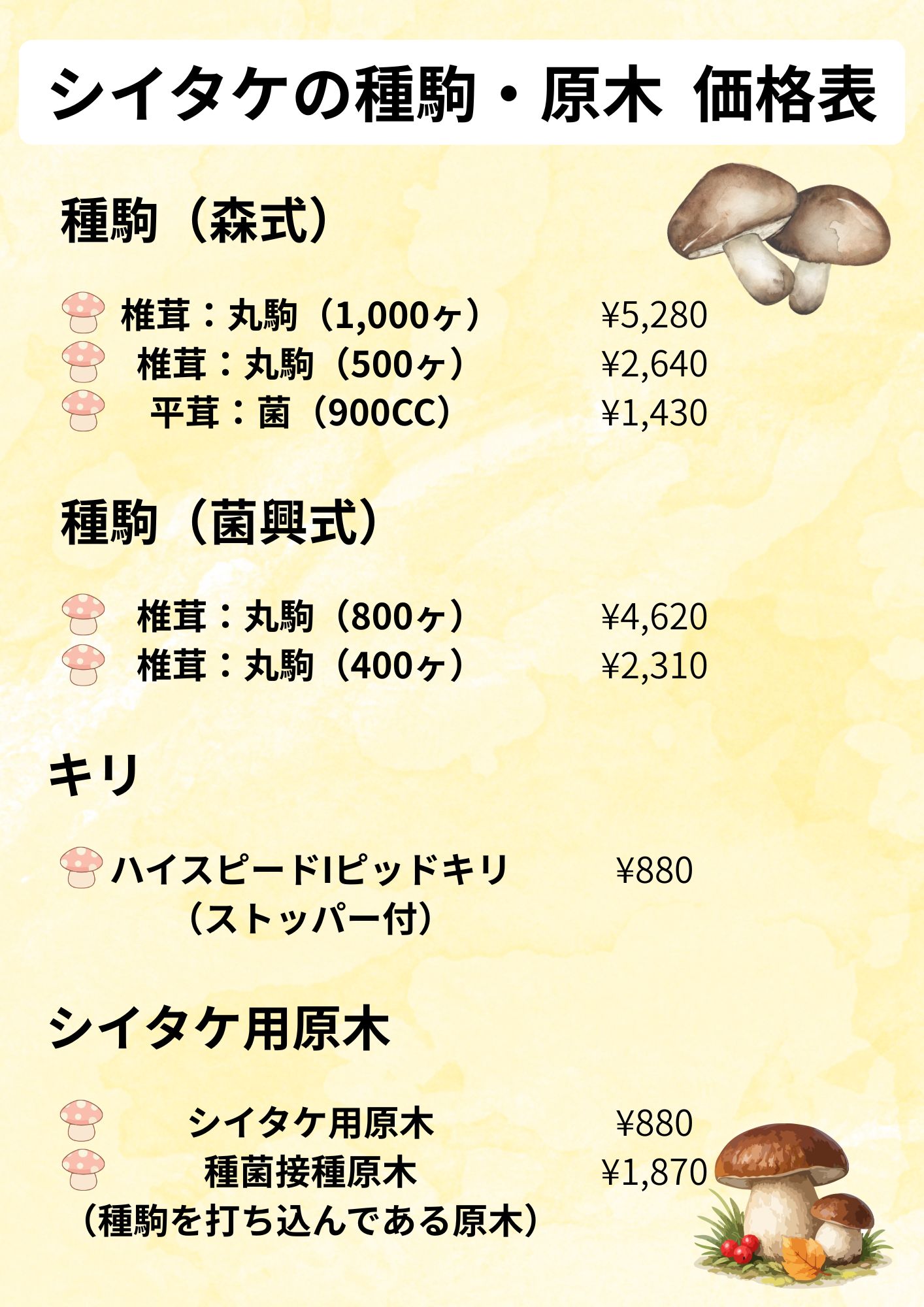 シイタケ種駒(500ヶ): (誤)2,420円 → (正)2,640円